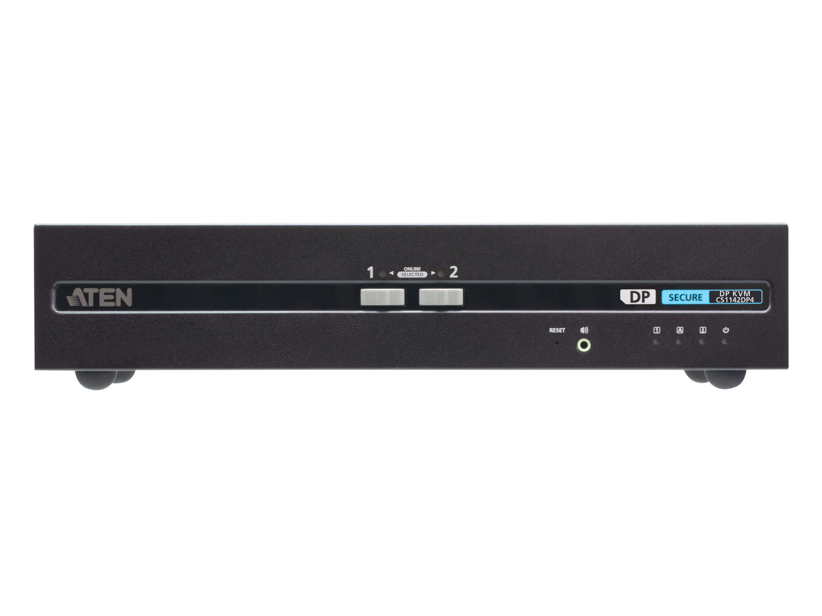 The CS1142DP4 is a PSD PP v4.0 compliant secure KVM switch designed to provide trusted peripheral sharing between two isolated systems. It allows a single keyboard, mouse, dual DisplayPort monitors and a speaker to be shared while enforcing strict data isolation and unidirectional data flow. This model is produced in Taiwan and meets rigorous security standards for sensitive environments.