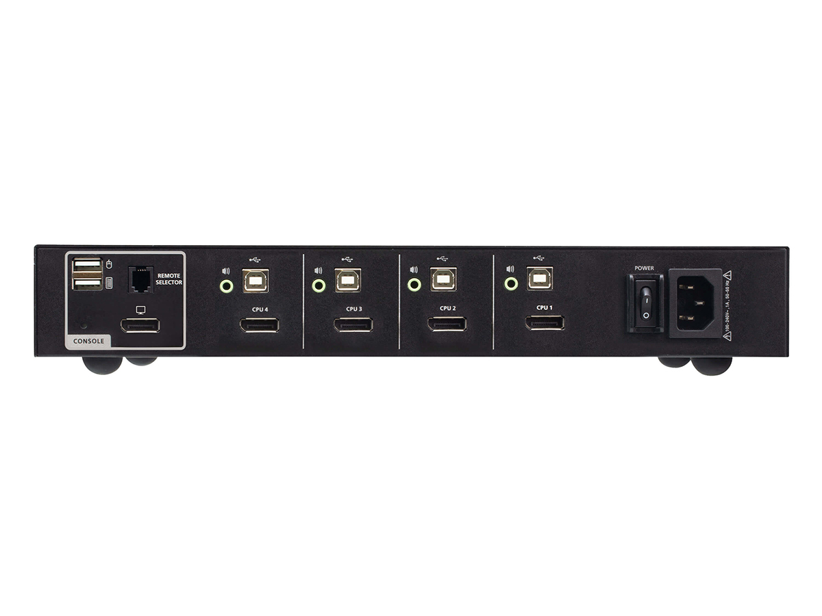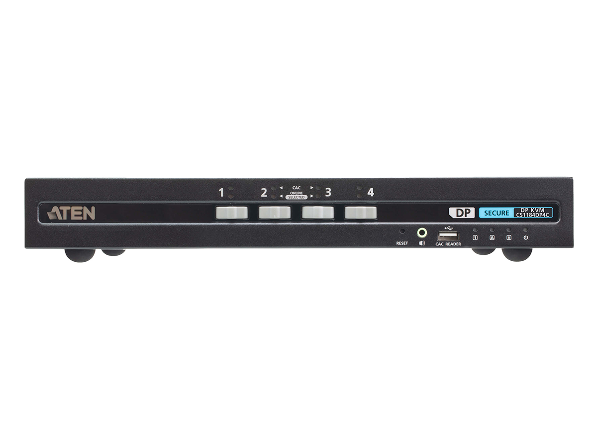 The CS1184DP4C is a secure 4-port USB DisplayPort KVM switch designed to share one monitor, keyboard, mouse, speaker and CAC reader across four isolated computer systems. It provides PSD PP v4.0 certified protections intended for sensitive environments where data separation is mandatory. The unit is built to render connected systems inoperable if physical tampering is detected ensuring a hardened desktop peripheral sharing solution.