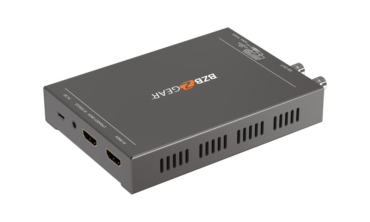 The BG-4KHS HDMI to SDI converter seamlessly converts an HDMI 2.0 signal to 12G/6G/3G/HD/SD-SDI in real time. The conversion between HDMI 2.0 and SDI is purely digital. When converting HDMI 2.0 to SDI, there is no loss or weakness of signal quality. Additionally, with up to 8 channels of audio support, 7.1 channel audio and 5.1 channel audio becomes available. With the use of BG-4KHS, users can expand their access to professional SDI compatible equipment!