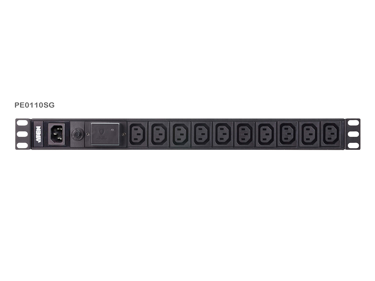 The PE0110SG is a compact 1U rack mount power distribution unit designed to provide reliable AC power distribution and surge protection in rack environments. It supplies power to ten IEC-320 C13 outlets from a single inlet while maintaining unfiltered electrical pass-through. The integrated surge protection includes an LED indicator to show surge module status.