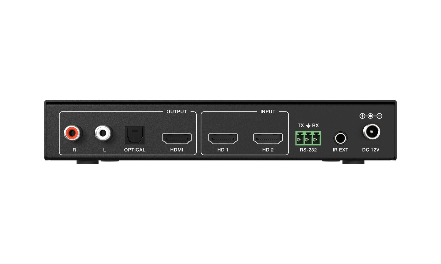 This device supports a wide range of input resolutions up to 4096x2160p 60Hz. It also could de-embed audio from any of the sources in different formats for your external audio system. Supported audio formats are LPCM, AC3, DD+, DTS, DTS- HD. User can control the volume of audio in LPCM format.