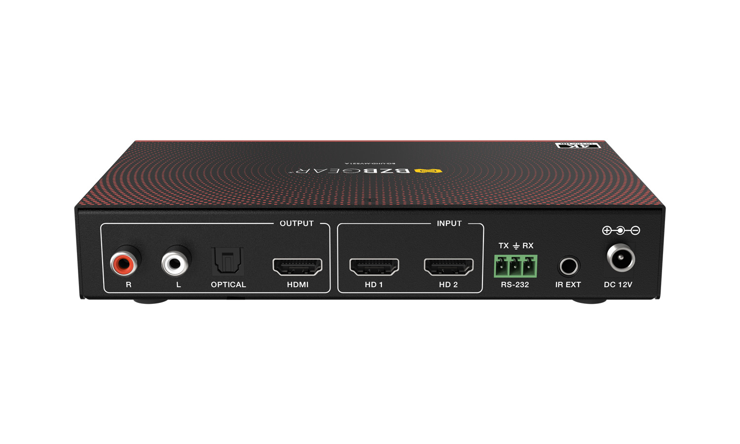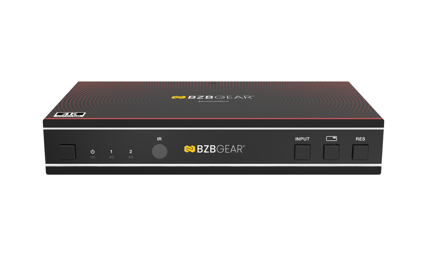 Multiple control options are available for the BG-UHD-MVS21A. It can be controlled through the front panel buttons, an IR remote, or RS-232 commands. EDID control is available through the RS-232 interface.
