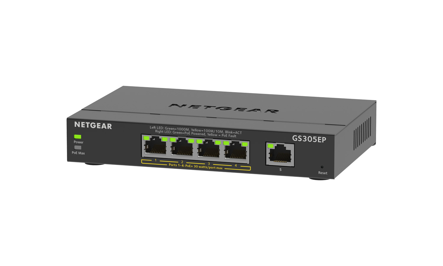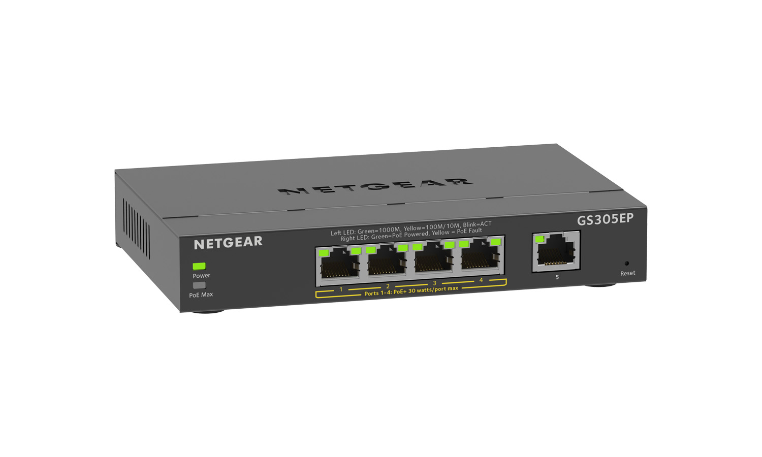 - Advanced features such as per port PoE controls