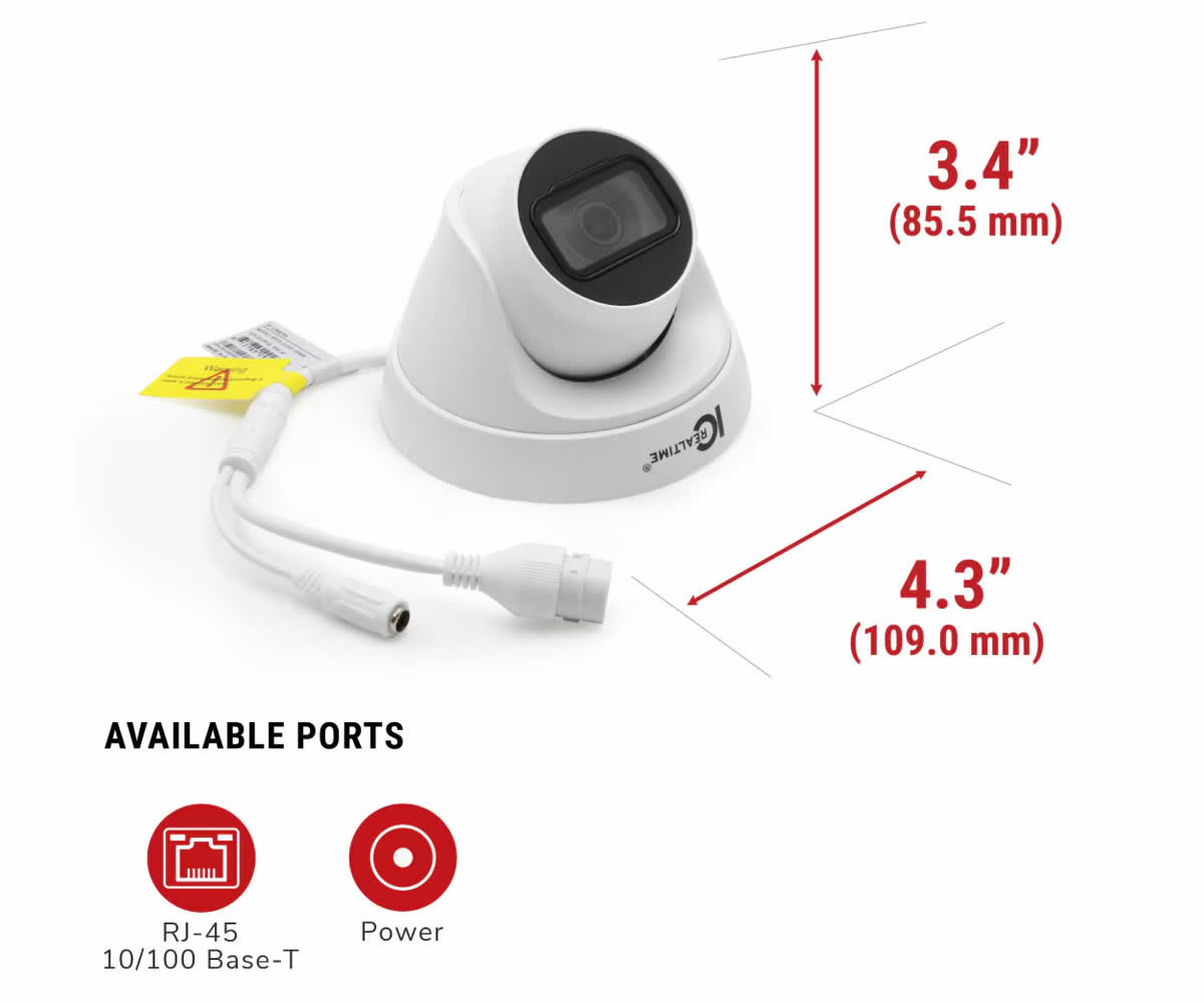 Weatherproof & easy to install, POE eyeball domes have become IC Realtime’s best-selling camera design. Eyeball domes encompass the best of both worlds – the toughness & vandal resistance of a dome camera integrated with the easy installation & perfect FOV aiming of a bullet camera. With or without an available screwdriver-fit MNT-IP MINIDOME-WALL-2 “porchlight” mount or color-matched MNT-JUNTION BOX 4, this 4th generation Edge Series eyeball camera brings those functional advantages into the price range of every network camera system.