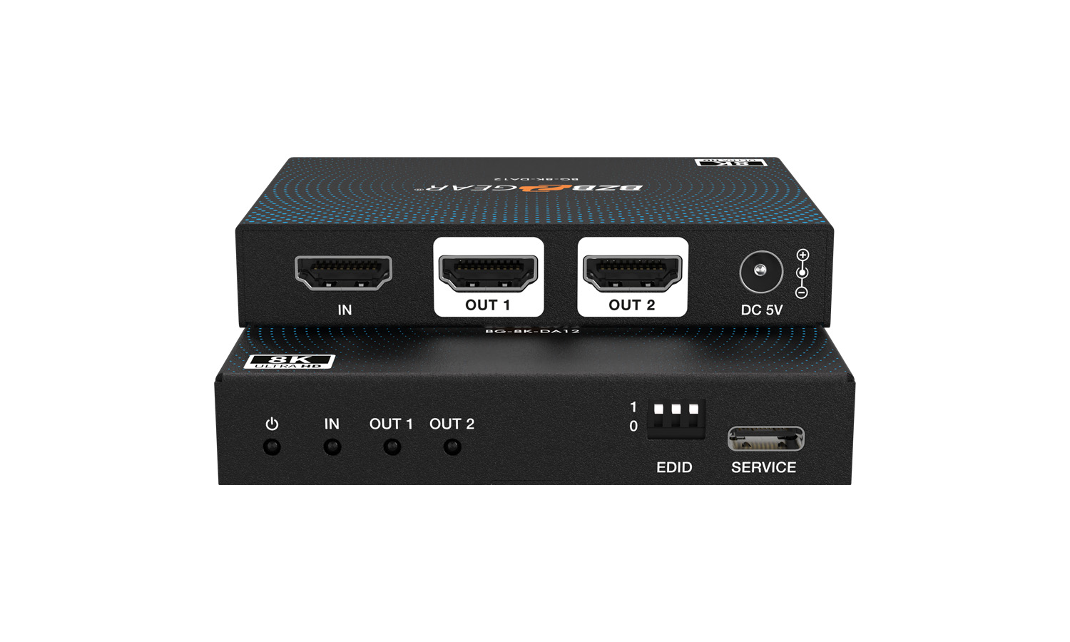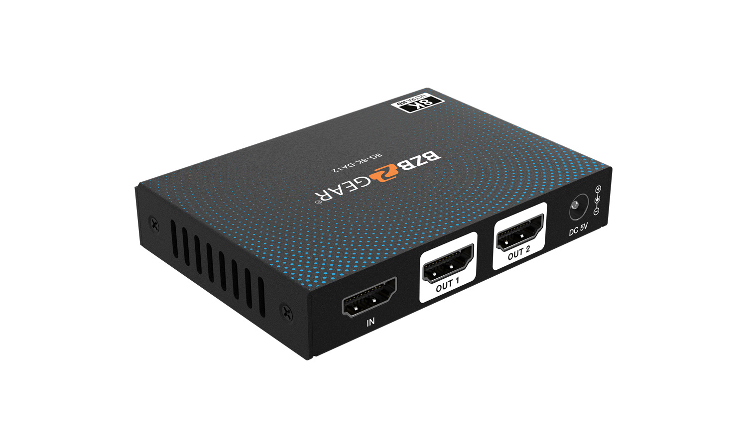 The BG-8K-DA12 1×2 HDMI Splitter is a high-performance device designed to split a single HDMI signal into two simultaneous HDMI outputs, delivering exceptional video quality with resolutions up to 8K@60Hz 4:2:0 12-bit. Engineered for demanding applications, this splitter supports data rates up to 48Gbps and complies with the latest HDMI 2.1 and HDCP 2.3 standards, ensuring seamless integration into any setup.