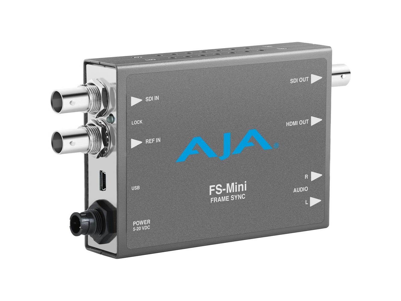 The FS-Mini is a compact broadcast-grade 3G-SDI utility frame sync designed to align untimed SDI video to a facility reference. It synchronizes 3G/HD/SD signals and provides simultaneous SDI and HDMI outputs for production and monitoring. The unit performs up, down and cross-conversion while maintaining 10-bit video processing quality.