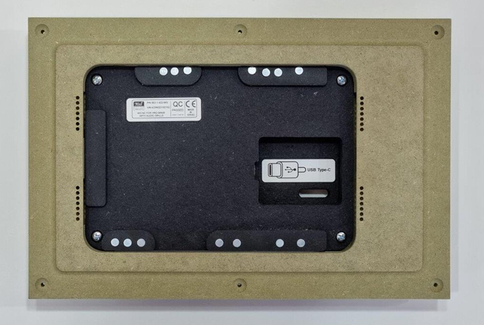 - Power Supply: Wall mount includes POE to USB converter. The installer should connect the wall mount to an IEEE 802.3at POE+ power source via CAT6 cable and RJ45 connector.