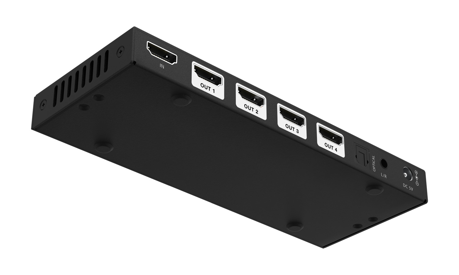 - Audio De-Embedding: Extracts audio via optical (S/PDIF) and 3.5mm analog outputs for external sound systems