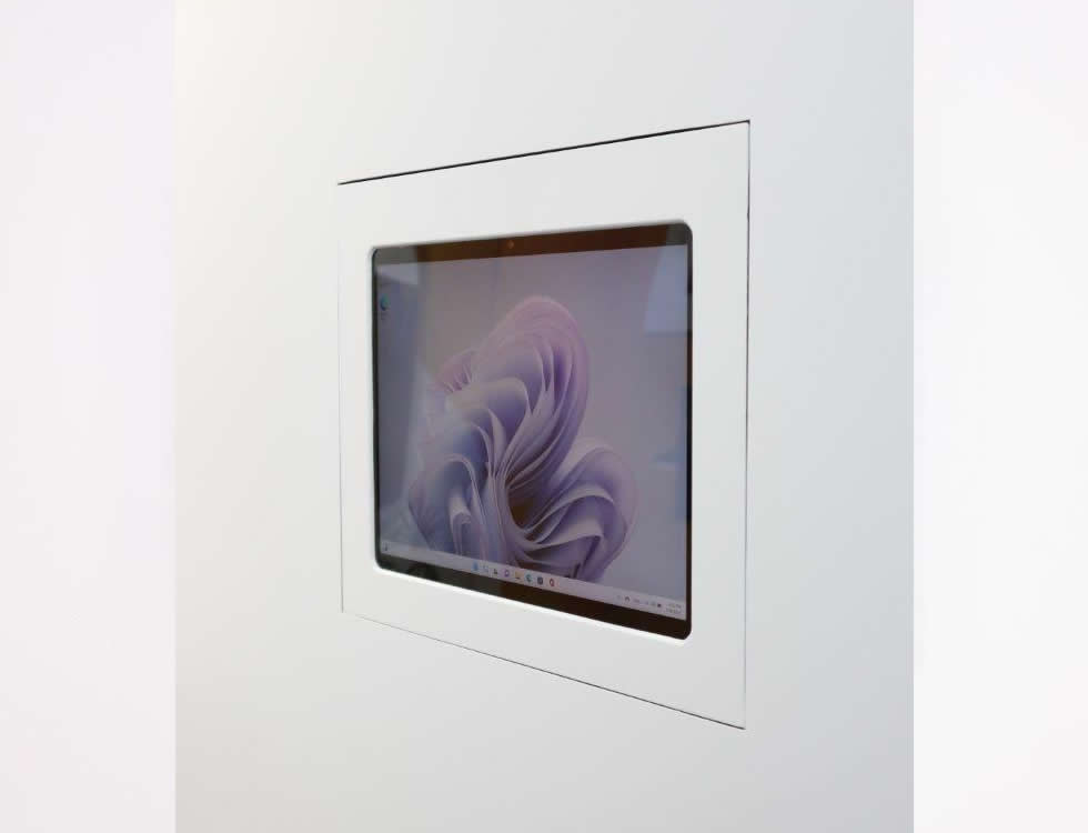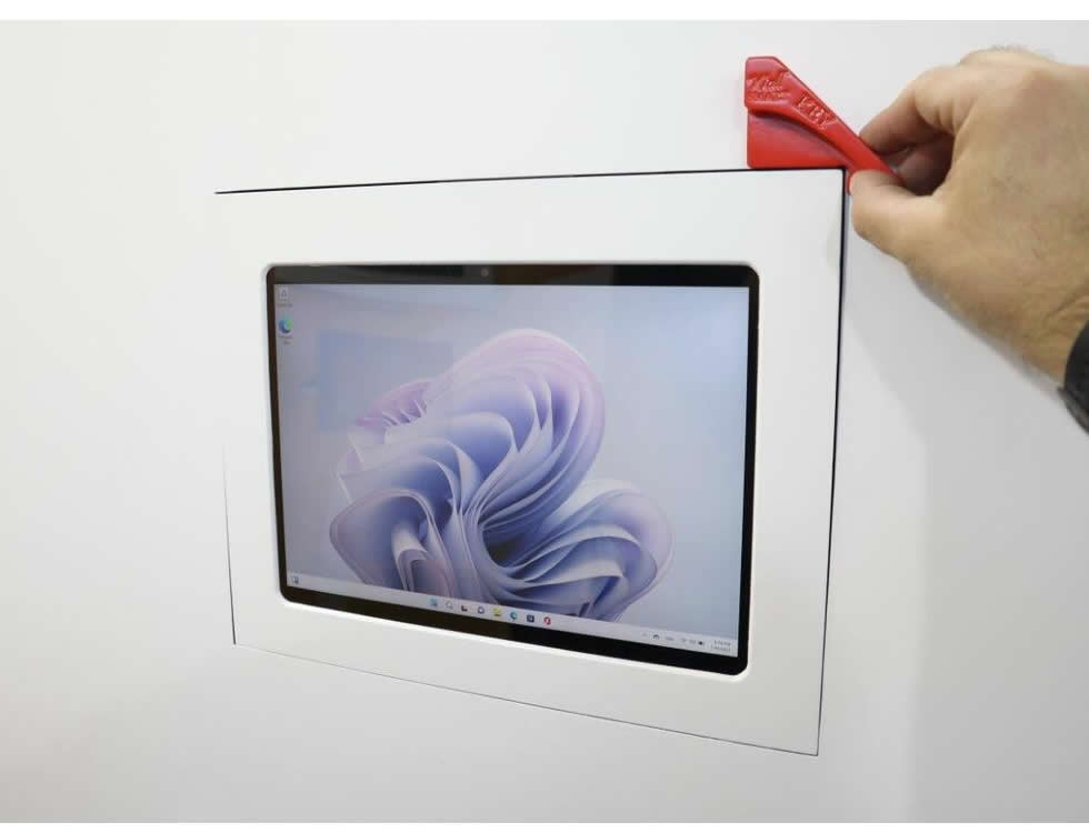 The Wall-Smart NC hidden in-wall adapter provides a flush-mounted enclosure for tablet-based control points – designed to integrate a Microsoft Surface tablet into drywall or concrete installations. This adapter secures the tablet behind a paintable front panel while allowing easy insertion and removal. It is intended for fixed installations where a clean wall-integrated appearance is required.