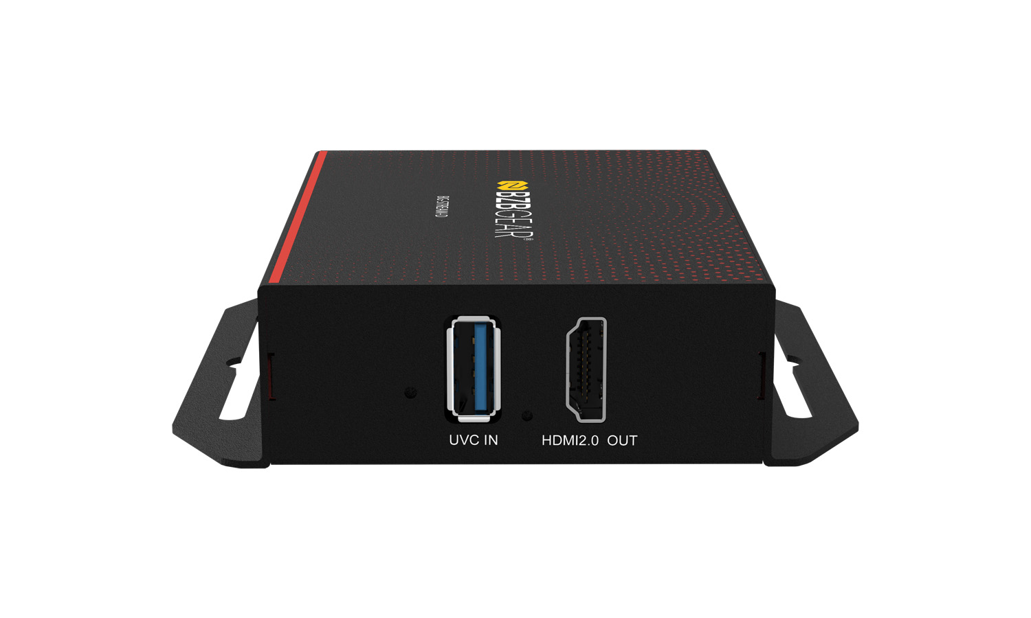 The BG-STREAM-D IP/UVC to HDMI 2.0 is an advanced video processing unit that supports multiple video and audio formats. It provides seamless connectivity options through its RJ45 and USB 3.0 inputs, delivering output via HDMI 2.0. This device is designed to handle high-resolution video up to 4096×2160p at 60/50fps, making it suitable for professional AV setups, live streaming, and broadcasting applications.