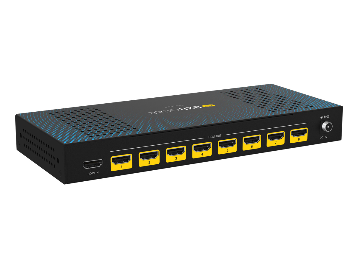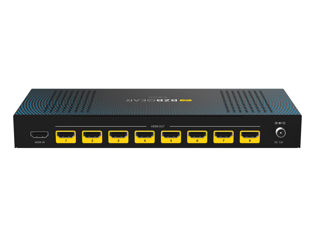 The BG-8K-DA18 is a high-performance 1×8 HDMI splitter designed to distribute a single HDMI source to up to eight displays simultaneously with uncompromised video and audio quality. Supporting resolutions up to 8K@60Hz (4:2:0 12-bit) and 4K@120Hz (4:4:4 12-bit), this splitter is fully compliant with HDMI 2.1 and HDCP 2.3 standards, delivering ultra-high-definition content with rich color depth and dynamic range.