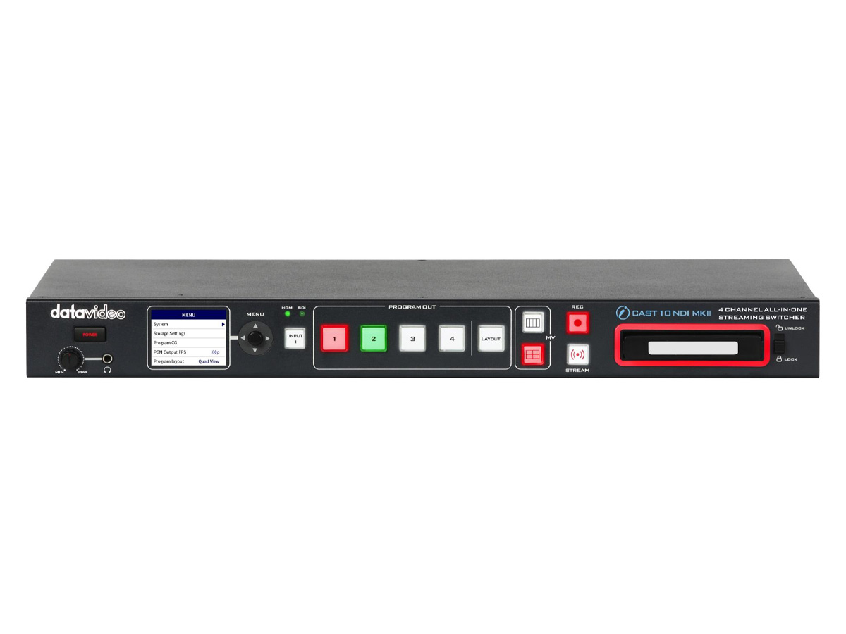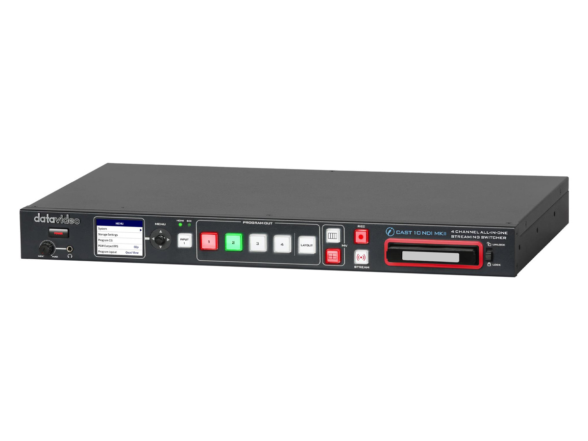The iCast 10NDI MKII is an all-in-one 4-input 1080p switcher designed to combine live switching, streaming and recording into a single compact unit. It integrates SDI/HDMI inputs, NDI|HX over IP, an H.264 recorder and a hardware encoder for direct streaming. The unit adds UVC output for conferencing compatibility and provides multiview monitoring on HDMI.