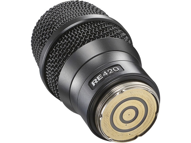 Typical applications include live vocal performance, broadcast and ENG environments, and any situation requiring an upgrade from a dynamic capsule to a condenser signature on compatible wireless transmitters. The RE420-RC3 preserves articulation and nuance while improving presence and intelligibility in mixes. It is useful where singers or presenters need expressive microphone technique and close working distance handling.