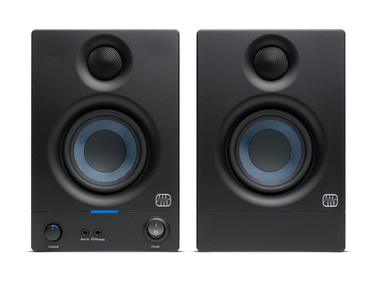 Key features include two combo mic/instrument inputs with high-quality preamplifiers and switchable 48V phantom power for condenser microphones. The monitoring chain is built around nearfield monitors with a woven-composite low-frequency driver and a silk-dome tweeter to deliver balanced frequency response. High-definition monitoring headphones offer extended bass response and tuned acoustic chambers for critical listening.