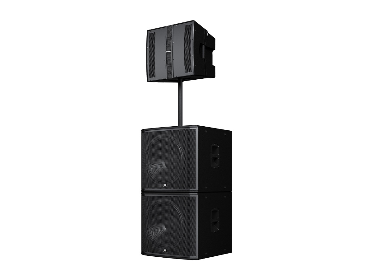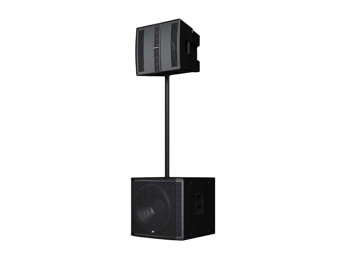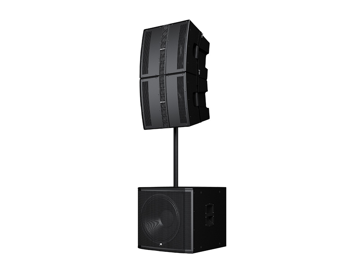 Key features include a patented hybrid point-source/line-array HF array of eight 2in cone drivers and a 12in low-frequency driver. Onboard DSP provides array presets, high-pass filtering and subwoofer presets to simplify system setup. Integrated pin-loaded rigging and a dual-angle pole mount support flexible deployment options.