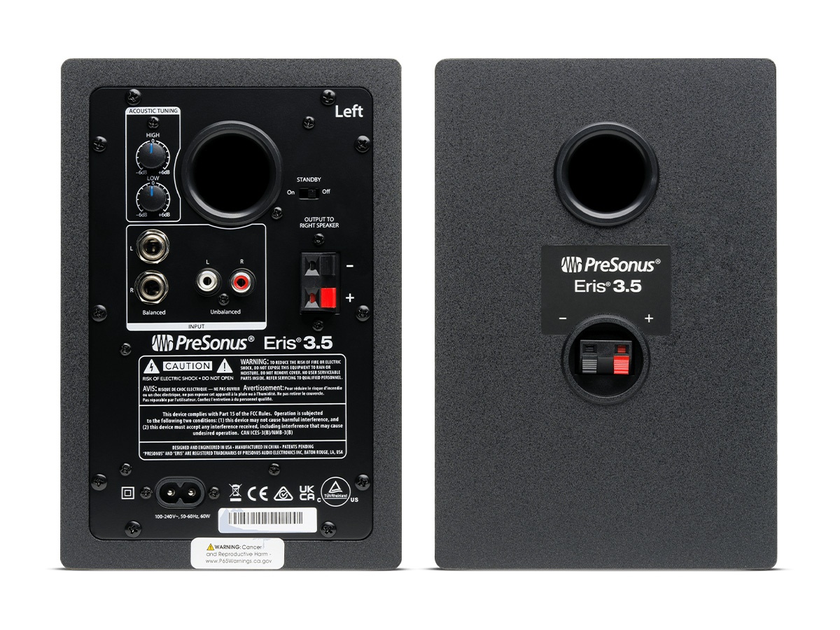 Installation is straightforward – place them on stands or desk mounts at ear height and orient the tweeters toward the listening position for best imaging. The power cable uses an IEC connection and a power saver mode engages after 40 minutes of inactivity to reduce energy use. Overall, the Eris 3.5 pair offers a reliable, accurate nearfield monitoring solution for small rooms at a modest footprint.