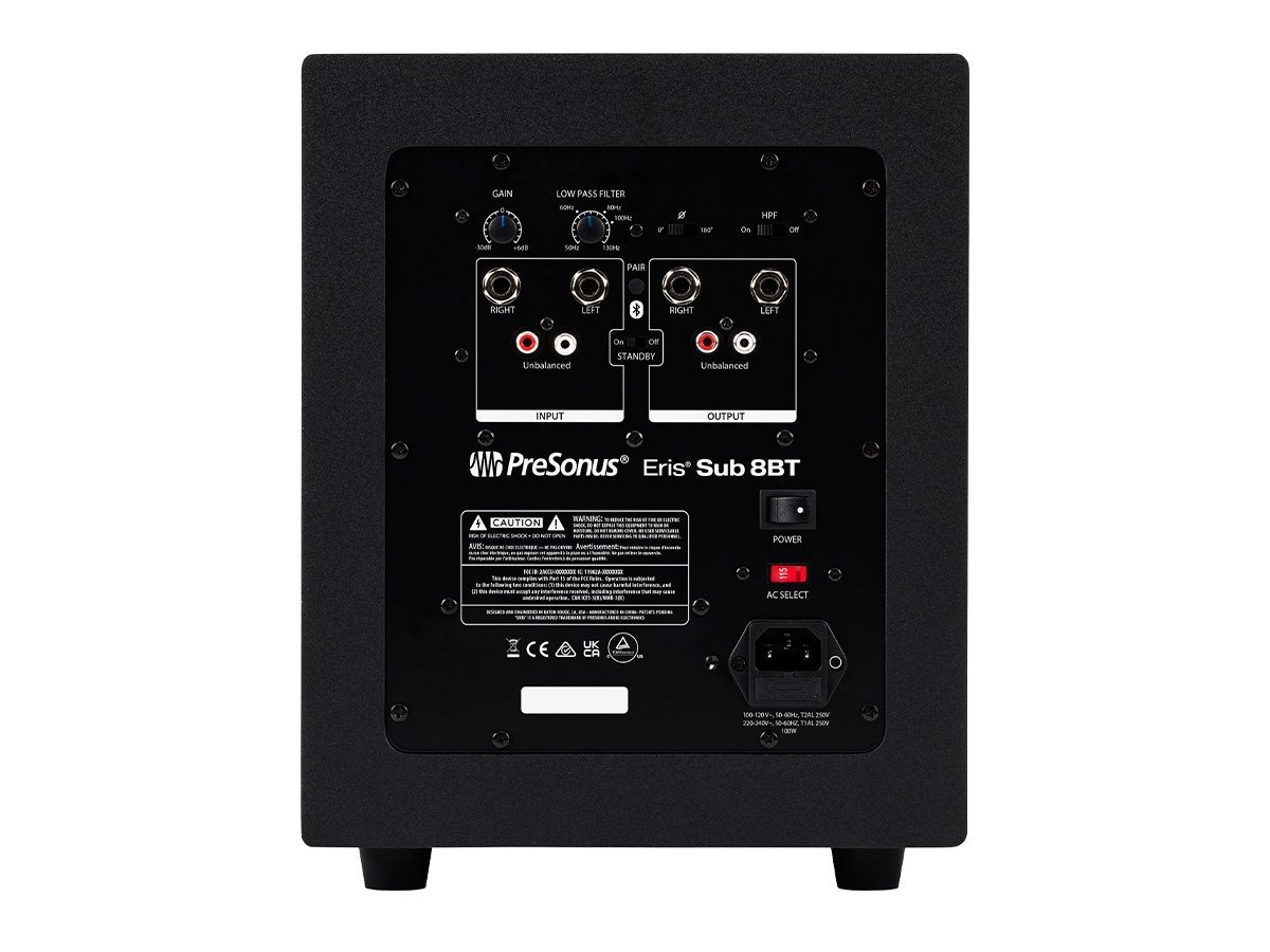 The Eris Sub 8BT is a compact 8-inch front-firing studio subwoofer designed to extend the low-frequency range of compact studio monitors and reveal the bass foundation of your mixes. It pairs easily with small desktop monitors to create a controlled 2.1 monitoring system. The unit emphasizes accurate bass reproduction down to 30 Hz to help you make informed mixing decisions.