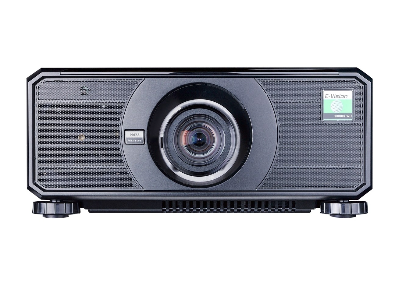 The E-Vision 10000i WU uses a 1 x 0.67″ DarkChip DMD with a native 1920 x 1200 pixel DMD to deliver crisp WUXGA images. Colour processing is 10-bit (30-bit pixel) with 1,073,741,824 colour support and advanced seven-point colour correction. Optomechanical design and radiator-assisted liquid cooling enable 24/7 operation with a stated illumination life of approximately 20,000 hours.