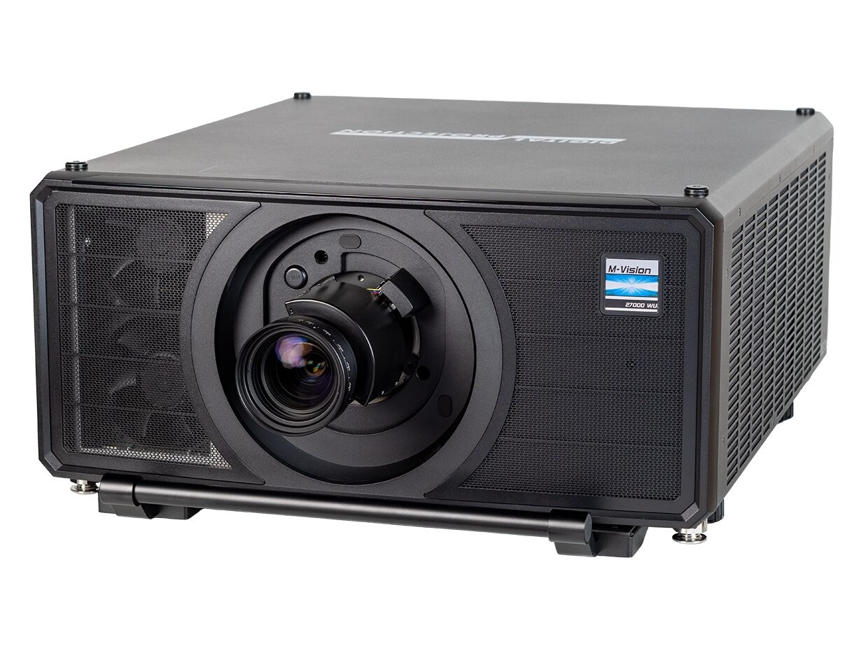 The M-Vision 27000 WU is a single-chip laser-phosphor projector engineered to deliver very high brightness and colour fidelity in challenging lighting conditions. It outputs 27,000 ISO lumens (24,000 ANSI) and uses ColorBoost+Red Laser technology to produce saturated, realistic colours at high luminance levels. The projector is sealed IP6X and filterless for stable long-term performance in demanding venues.