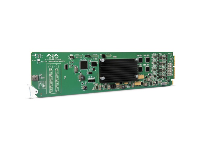 The OG-12G-AMA is an openGear 8-channel analog audio embedder and disembedder that supports 12G-SDI up to 4K/UltraHD. It automatically detects the incoming SDI video standard and configures itself to match frame rate and format. The card is designed to fit high-density openGear 2RU frames for broadcast and pro AV installations.