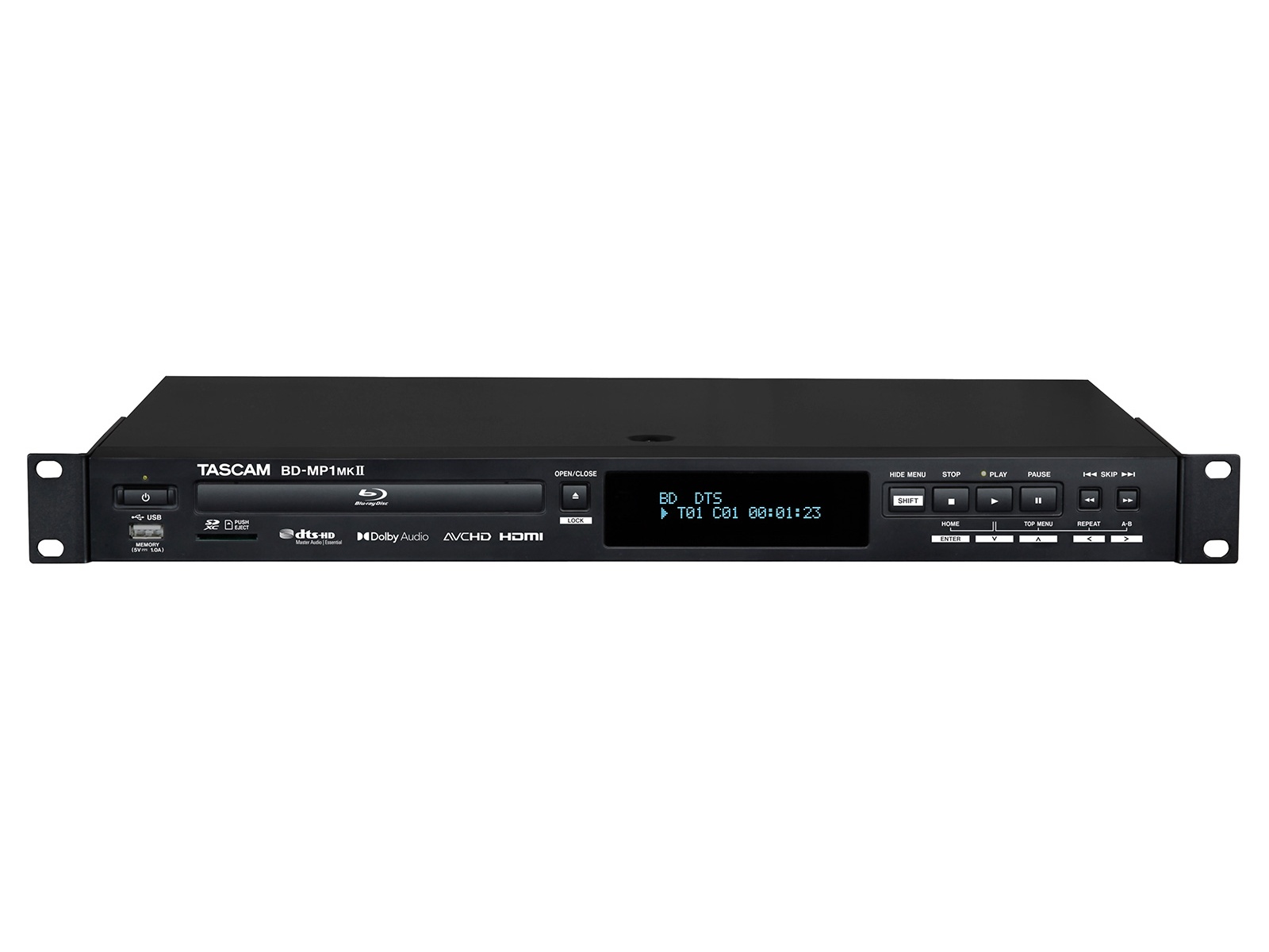 The BD-MP1MKII is a rackmount Blu-ray and media player designed to provide single-source playback of optical discs and removable media. It supports Blu-ray, DVD, and CD formats as well as file playback from USB flash memory and SD cards. The unit is engineered for installations that require reliable unattended playback and consistent output.
