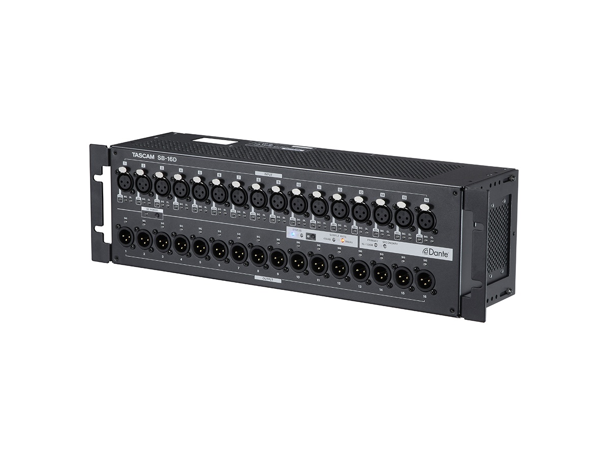 The SB-16D is a 16-in/16-out Dante-enabled analog stage box designed to bring high-quality analog I/O onto Dante networks. It provides 16 XLR mic/line inputs and 16 XLR line outputs in a single floor or rack-mountable chassis. The unit integrates Class 1 HDIA mic preamps and 32-bit ADCs to preserve audio fidelity across networked systems.