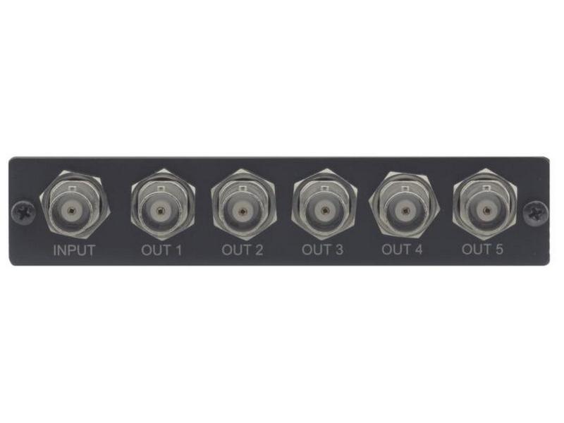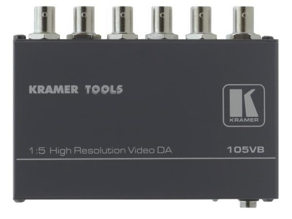The 105VB is a high-performance distribution amplifier for composite video signals. It takes one input, provides correct buffering and isolation and distributes the signal to five identical outputs.