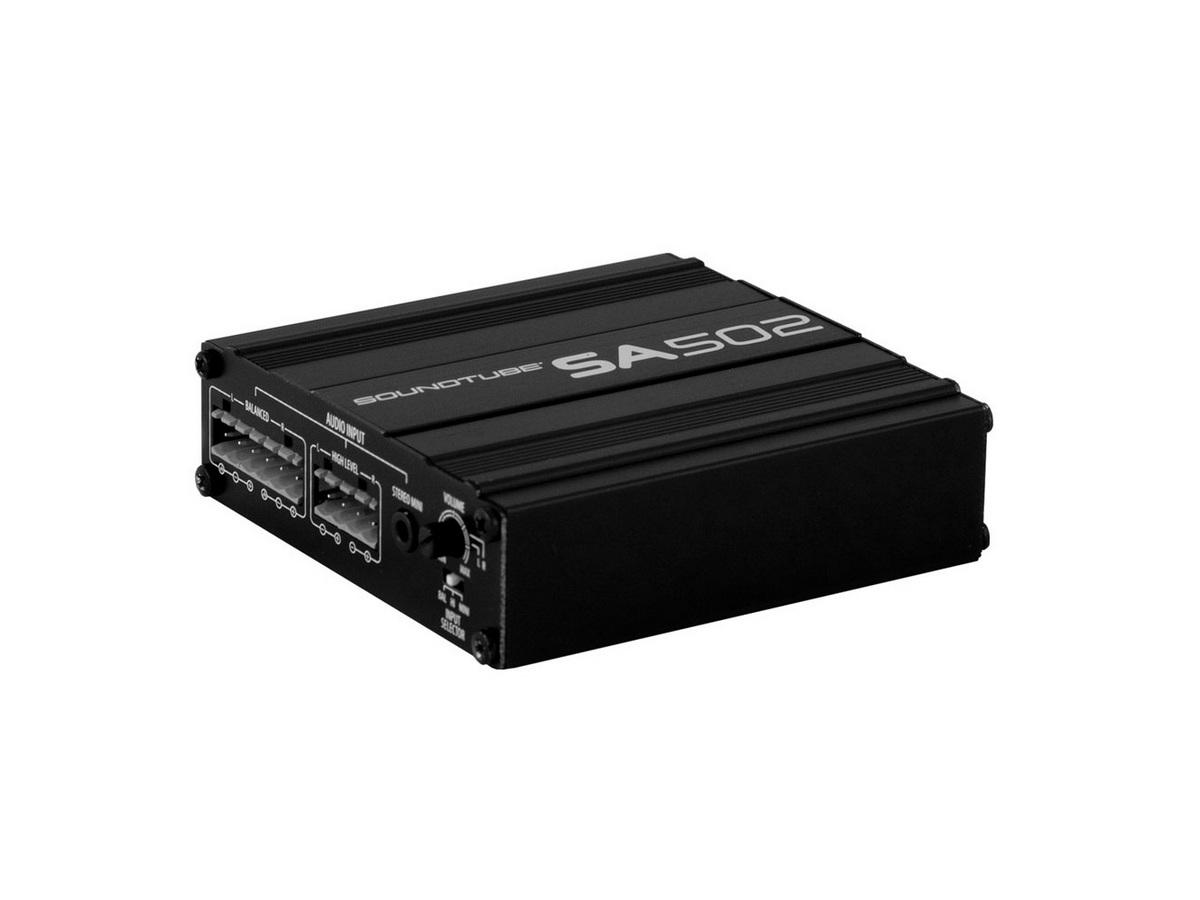 The SA502 is a 50W per channel (4-ohm) Class D amplifier which has a maximum gain of 34 dB, and it