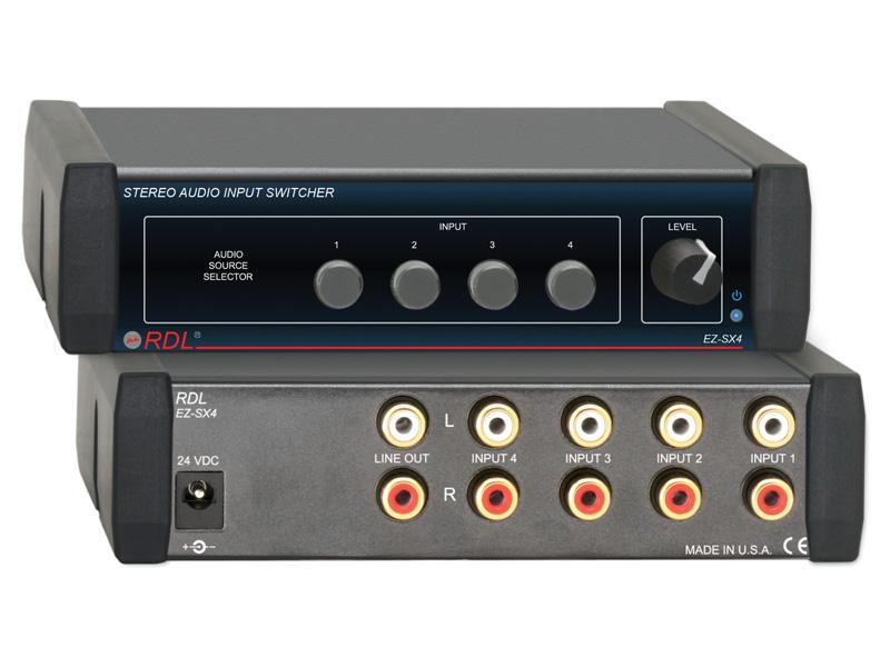The EZ-SX4 is a stereo audio source selector with an output volume control that adjusts the line-level output. This unit is ideal as a four input source selector feeding an associated audio amplifier. The user can conveniently select an audio source and adjust the level on the front panel. The EZ-SX4 is used in stores, houses of worship, restaurants, clubs, home component systems and commercial sound systems.