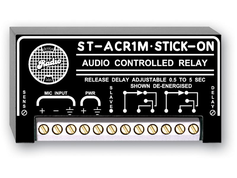 Each of the ST-ACR products is an Audio Controlled Relay in the STICK-ON® series. These products are designed for quick, convenient installation, and reliable operation in a variety of control applications. The ST-ACR-1M is designed to switch on low-level sources, such as microphones or mic-level sources.