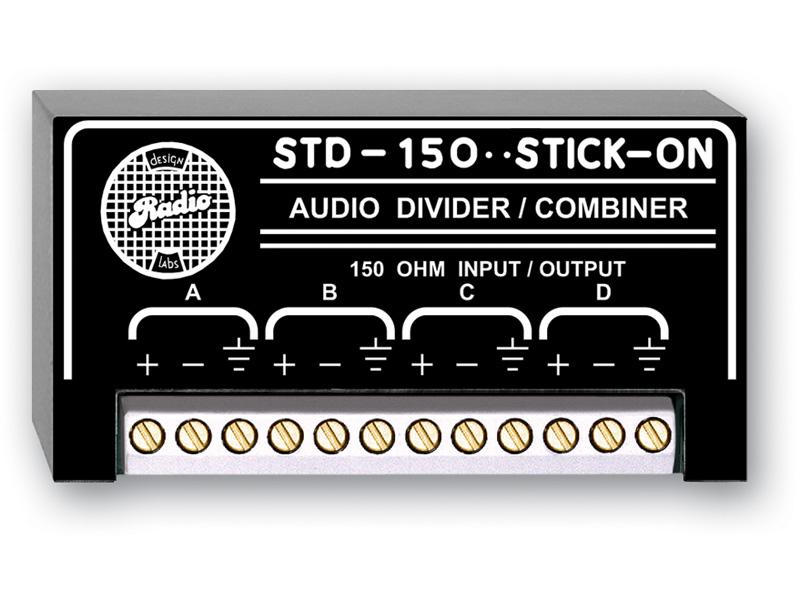 Each STD module is a resistive branching network with RF filtering on each of the four channels. Any channel, A through D, may be either an input or an output. This permits combining stereo signals into mono inputs, splitting mono signals to multiple inputs, and even combining microphones with output shorting switches into a single amplifier input. The STD modules are available in 150 O, 600 O and 10 kO models. All inputs and outputs are balanced.
