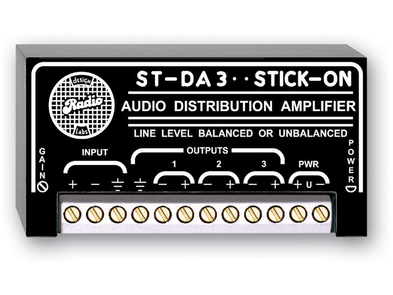 The ST-DA3 gives you the advantages of an audio distribution amplifier PLUS you can put it where you need it. The ST-DA3 allows bridging of any audio line, adjusting the gain, and driving up to three high or low impedance, balanced or unbalanced loads. The ST-DA3’s wideband circuitry produces the unsurpassed pure clarity, low-distortion and low-noise for which RDL products are known.