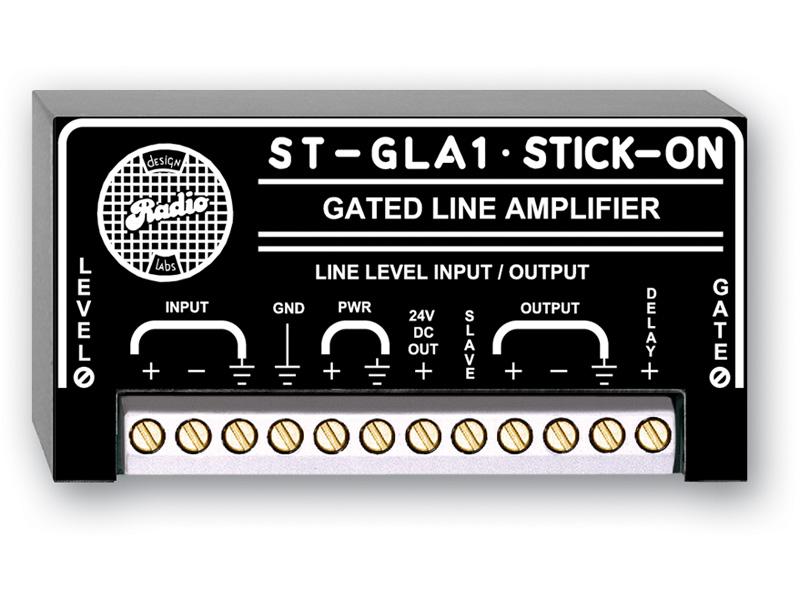 The ST-GLA1 is a self-gated line amplifier designed to be used in a variety of situations where it is desired to produce an automatically switched line-level signal with integral noise reduction. This module may be used in conjunction with other RDL® modules to configure automatic mixing systems or may be used alone as a noise gate. The open-collector slave output may be used to trigger other equipment or RDL modules. The versatility of ST-GLA1 applications range from complete automatic mixing system design to the addition of automatic gating to the inputs of conventional mixers or amplifiers to suppress accumulated or induced system noise.