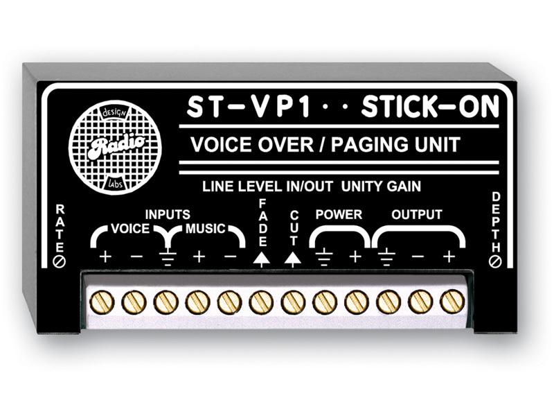 The ST-VP1 is intended for voice-over paging with user adjusted and controlled FADE or CUT between two input sources. This unit is also perfect for voice-overs where precise and consistent fade levels are required. Automatic operation can be achieved when used in conjuction with RDL´s® ST-ACR products.