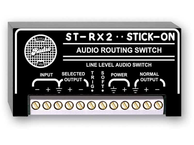 The ST-RX2 has a single line-level audio input and two line-level audio outputs. In the absence of a control input, the NORMAL module output is fed from the audio input. When the TRIG control terminal is connected to ground, the input audio is fed to the SELECT output and the NORMAL output is switched off. When the TRIGterminal is again disconnected from ground, then the SELECT output is turned off and the NORMAL output is fed from the input. The module contains no relays or other mechanical devices. The control circuits utilize solid-state switching to route the input signal to one of the balanced output line drivers with off attenuation better than 80 dB at all audio frequencies. Soft switching is used to eliminate clicks or pops.