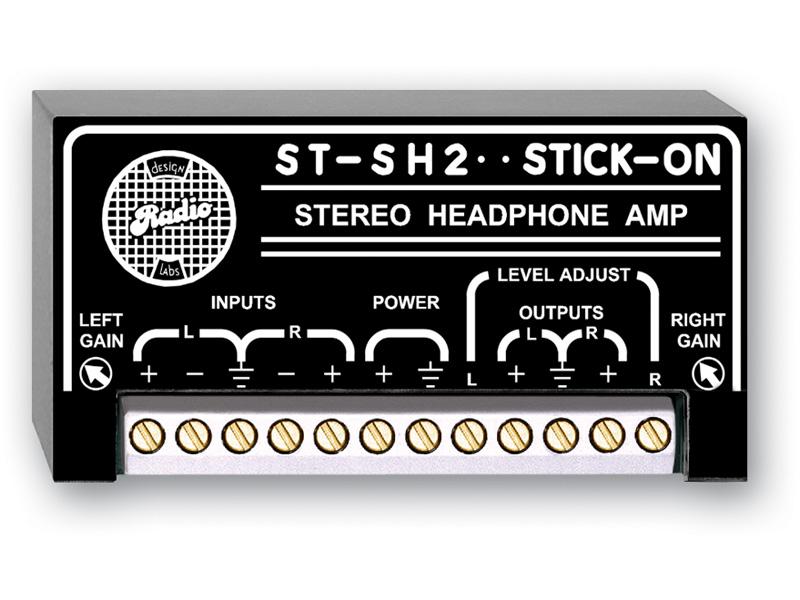 The ST-SH2 is used in applications requiring headphones of any impedance to be driven from consumer or professional audio sources. For fixed level installations not requiring user volume control, the ST-SH2 is wired to the audio source and to a headphone jack. Frequently, it is desirable to mount a volume knob by the headphone jack. The LEVEL ADJUST terminals (L) and (R) may be wired to the respective wipers of a stereo 10 kO potentiometer to provide volume adjustment. It is recommended that the ST-SH2 be located less than 39 in. (1 m) from the jack and volume control.