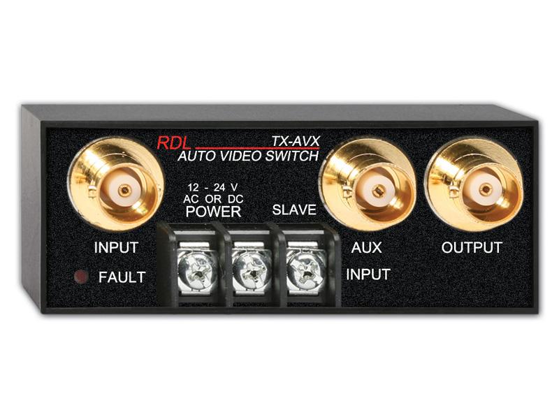 The TX-AVX is the ideal choice in installations where automatic switchover to an alternate video source is needed when the primary signal is lost. The unique power supply input allows the TX-AVX to be powered from a wide variety of existing ac or dc power sources.