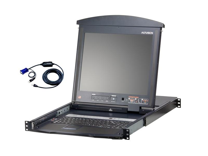 dual slide 17-inch LED-backlit LCD monitor and keyboard. One KL1516AiMUKit is capable of controlling