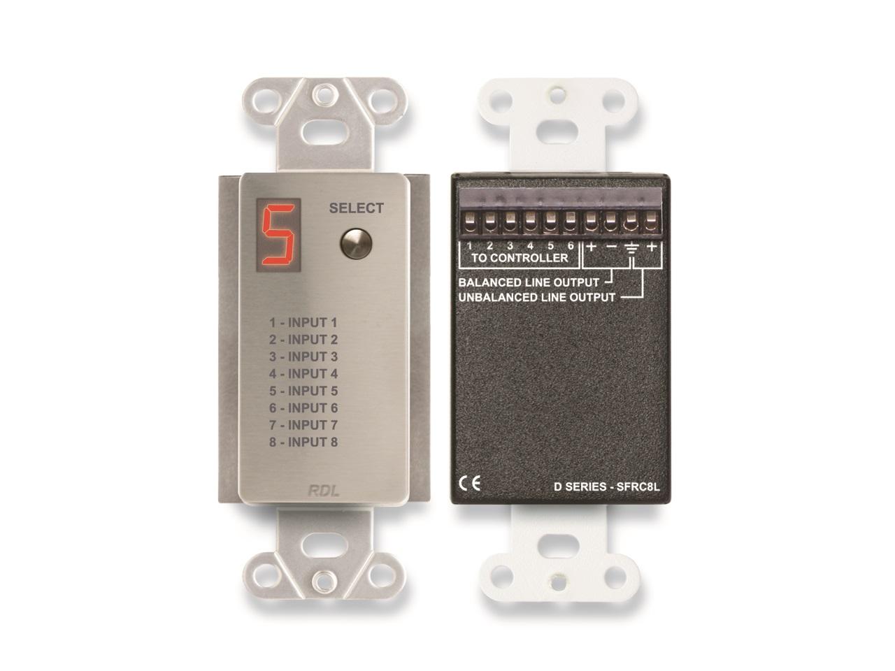 The D SERIES-SFRC8L Audio Selector is a SourceFlex module for wall mounting in a