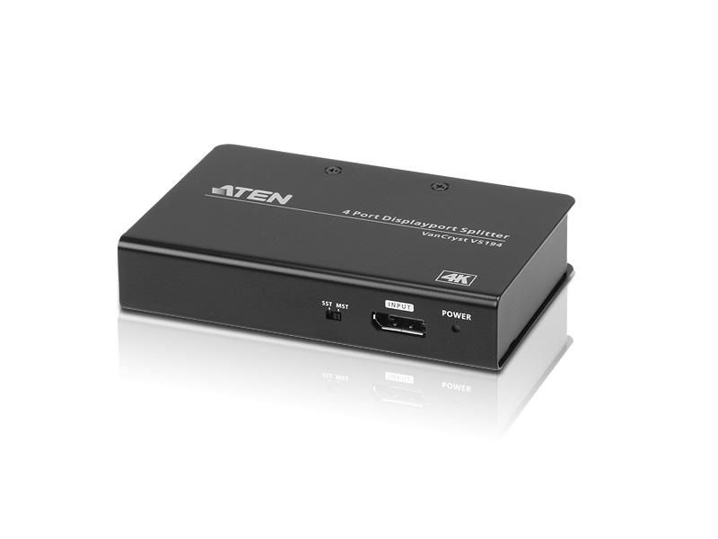 - Connects one DisplayPort source to two or four DisplayPort monitors