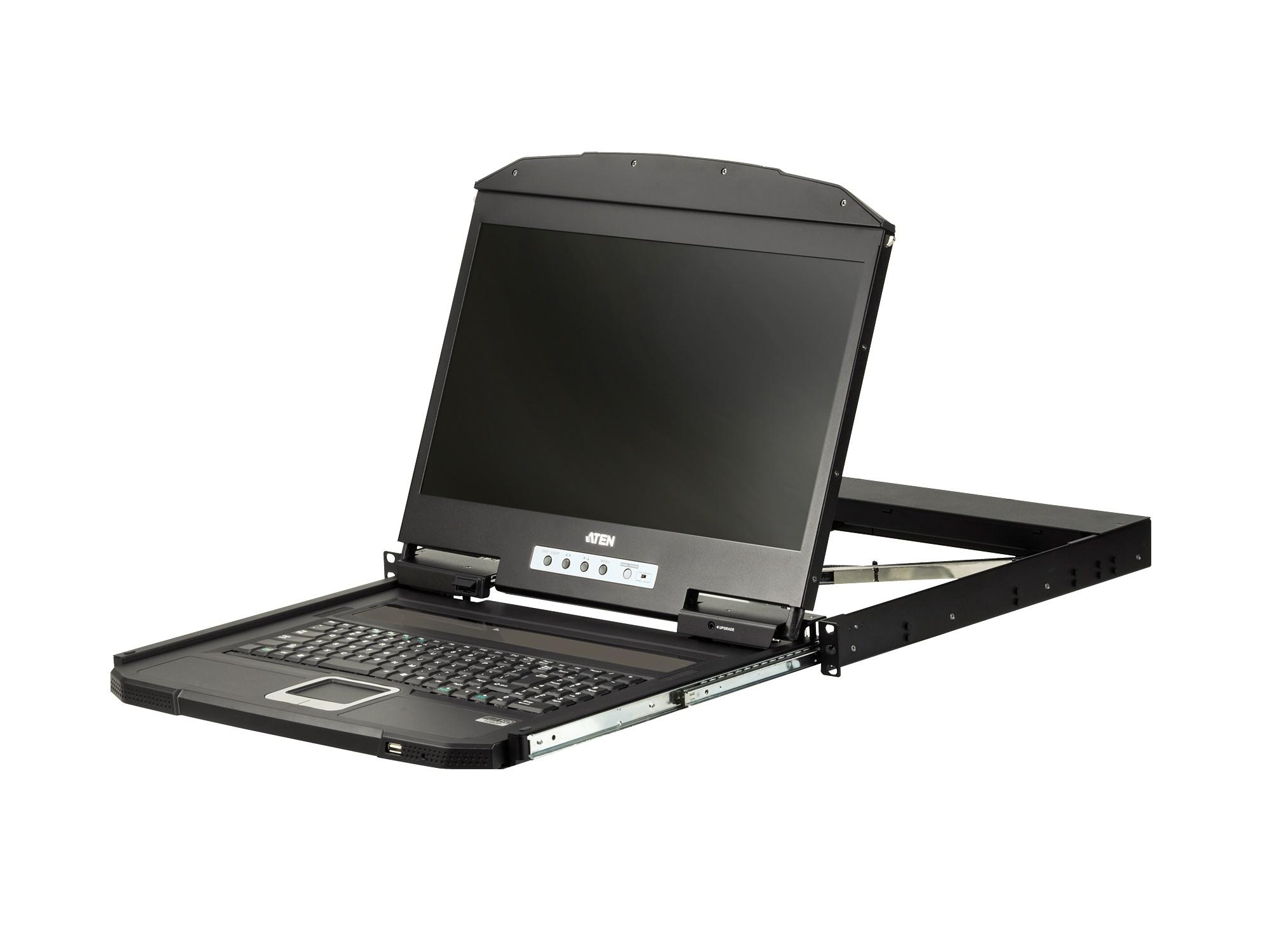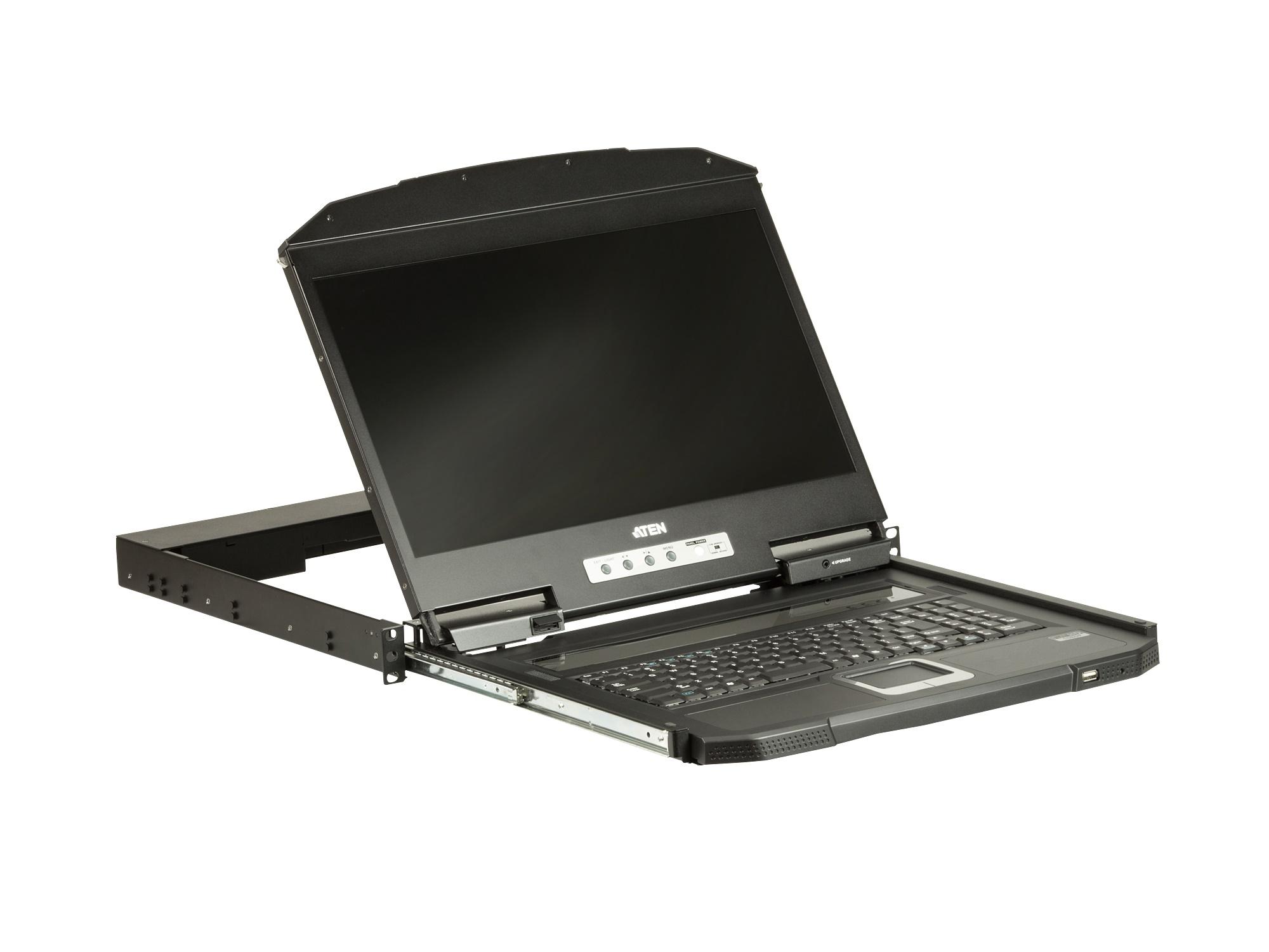 The CL3700 USB HDMI LCD Console is a short depth single rail LCD KVM console featuring an 18.5″ LED-backlit widescreen LCD monitor with an integrated keyboard and touchpad. The short-depth design fits all 19″ equipment cabinets, and is especially suitable for shallow racks. The CL3700 provides an ideal space-saving solution for special environments such as outside broadcast vans (OB vans) and compact control rooms.
