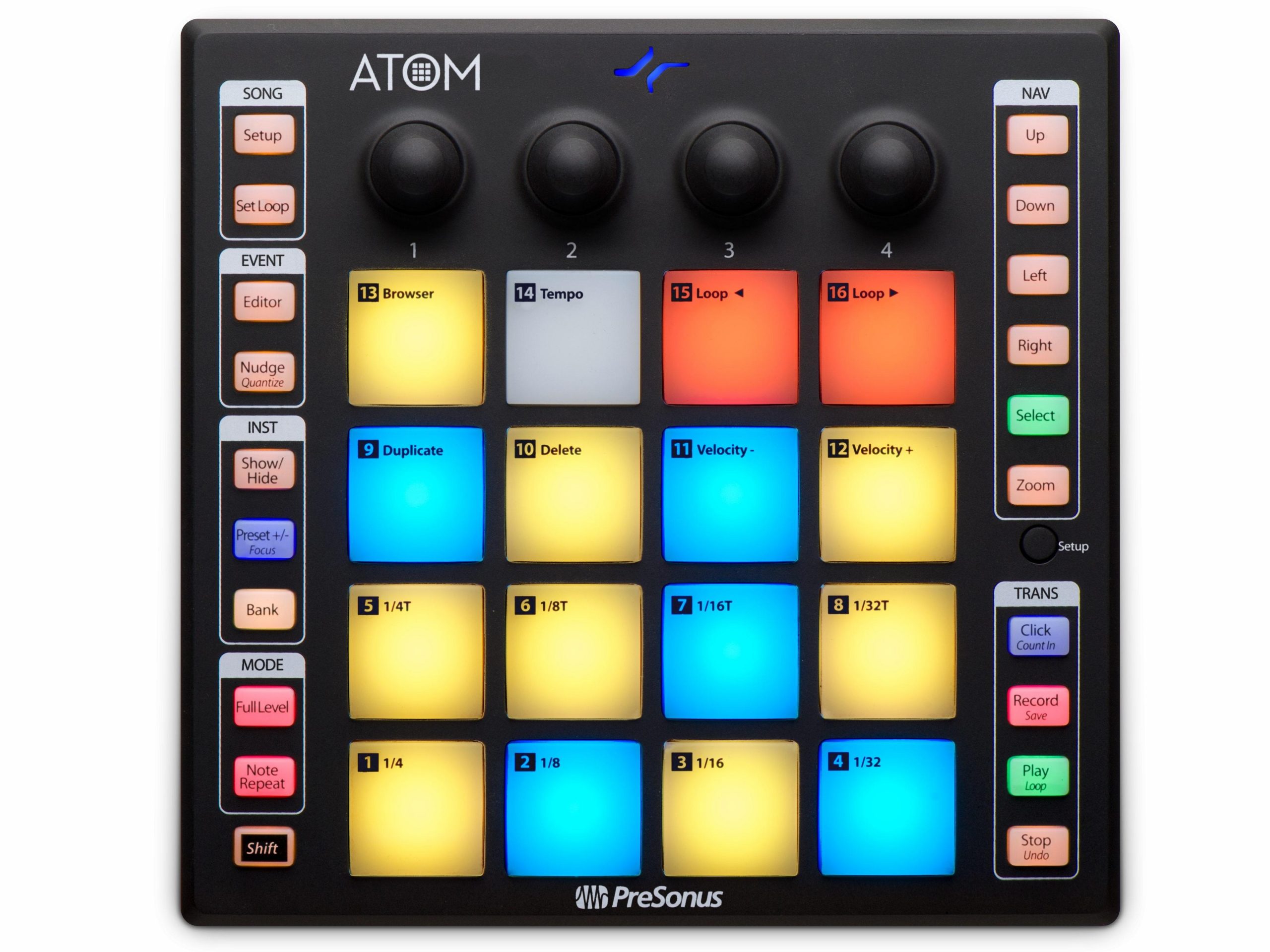 ATOM connects to your computer via USB and is compatible with most music production and performance software but it is absolutely amazing when used with PreSonus Studio One. ATOM and Studio One integrate tightly so you can create quickly and easily. Enjoy blazingly fast, professional-style workflow with ATOM’s navigation, editing, and loop-point-creation features and transport controls.