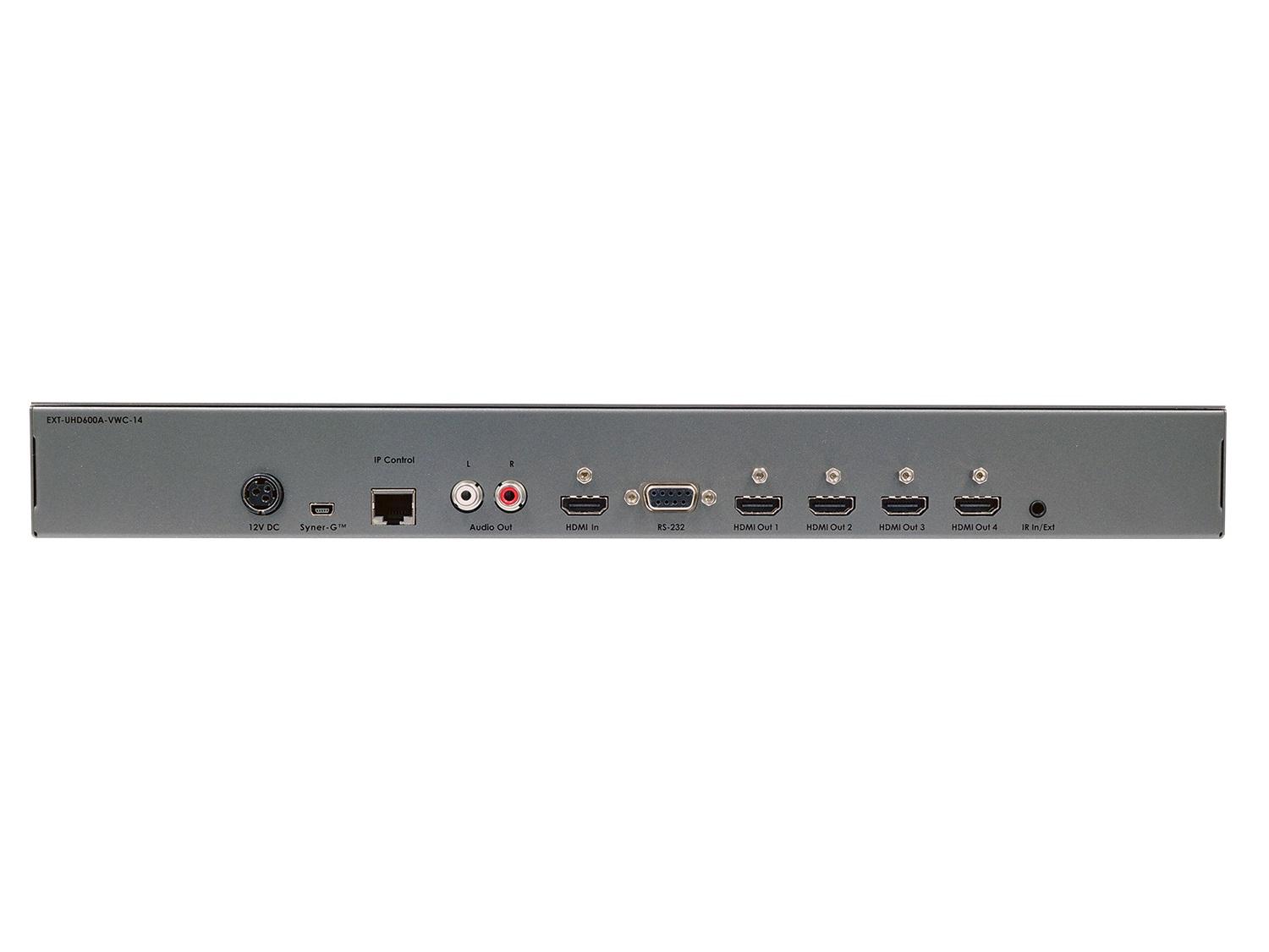 The picture on each display can also be rotated in 90 degree increments, individually or simultaneously. The 4K Ultra HD Video Wall Controller’s versatile bezel compensation ability can accommodate any display bezel width. Analog audio can be de-embedded from the HDMI source and be routed to an outboard sound-reinforcement system, adding presence and impact to AV presentations. The EXT-UHD600A-VWC-14 is controllable via front panel, its handheld IR remote control, RS-232, and IP (web server interface, Telnet, and UDP). An intuitive on-screen Graphical User Interface simplifies system configuration. Its 1U tall enclosure features removable rack ears. It can be mounted in a standard 19-inch wide rack or conveniently be placed on a shelf.
