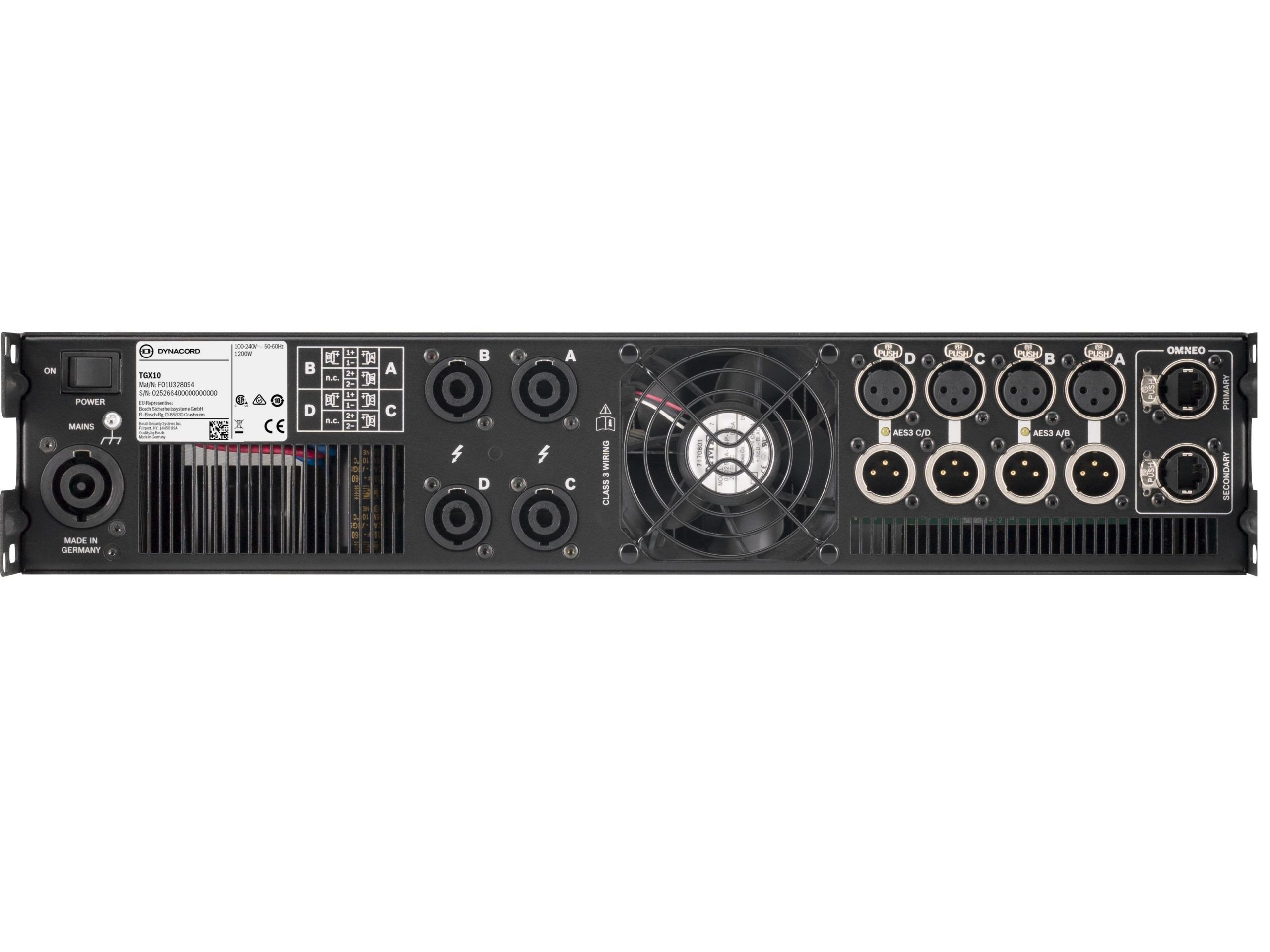 4 x 2500W DSP Amplifier with OMNEO, AES/EBU