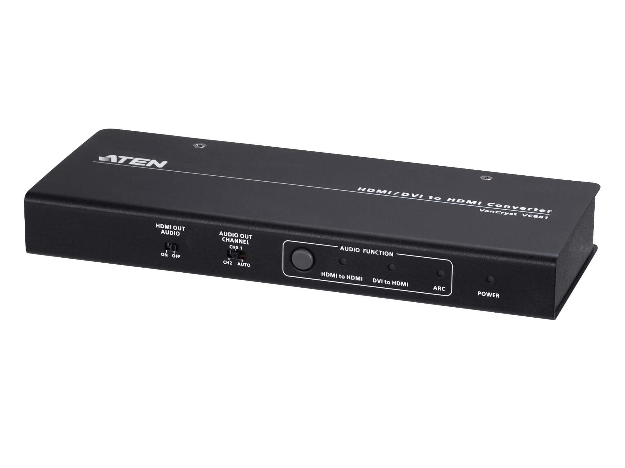 TEN VC881 is a high-quality HDMI/DVI to HDMI converter with audio de-embedding function. Input a DVI signal and it converts the signal to HDMI signal or input an HDMI signal and it extracts the HDMI audio signal. Advanced video support provides a better-defined connection with video resolutions up to 4K and complies with HDCP 1.4.