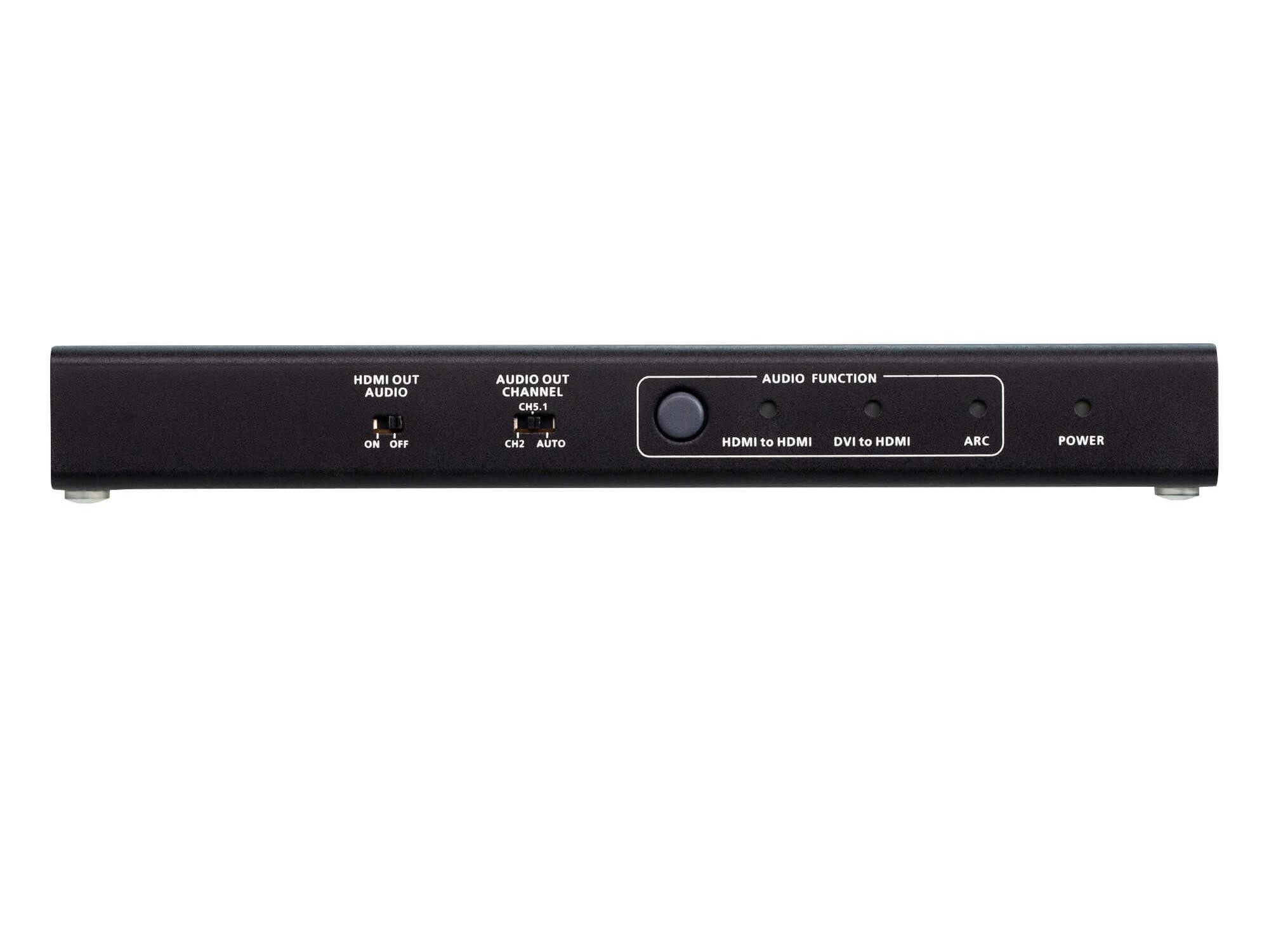 The VC881 offers the fl exibility to support signal interface conversion (DVI to HDMI) and HDMI audio de-embedding. For HDMI audio de-embedding function, the VC881 splits the audio from HDMI video and converts it to S/PDIF, Coaxial, or a RCA Stereo Audio signal to support an audio system that is separate from the display. This allows HDMI video to continue to the display while supplying audio to an audio system near the HDMI source. In addition, the VC881 supports ARC to simplify the setting by eliminating the need for any separate S/PDIF audio connection.
