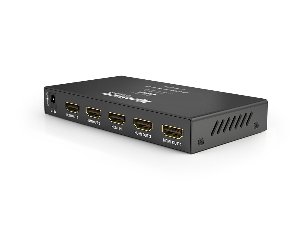 - Allows a transmission from a single HDMI audio/video device to be duplicated and simultaneously distributed to up to four HDMI display devices, such as TV, AVR, digital signage panel or digital projector