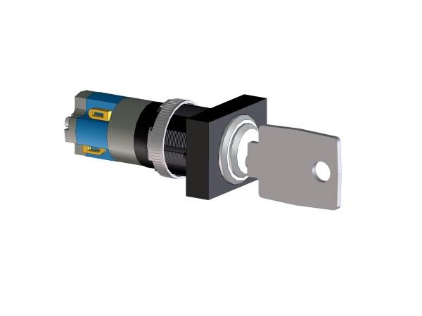 The PVA-1KS is an optional key switch for installation in the PAVIRO call stations. The feed lines of the key switch are monitored for short-circuits and interruptions. For more information, see the call station manual.