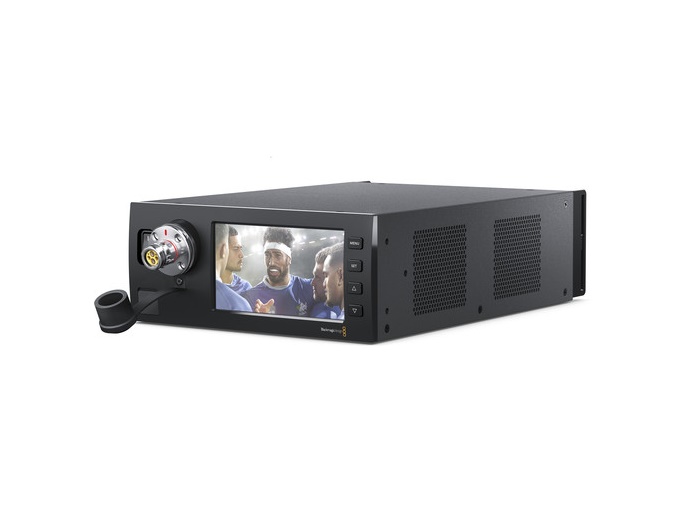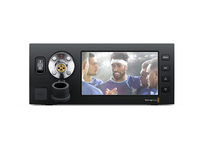 Work with remote cameras up to 2 km away from your studio or outside broadcast truck using SMPTE fiber. The Blackmagic Studio Fiber Converter converts SDI video, audio, and remote camera control connections into a single optical fiber cable, which connects to a Blackmagic Camera Fiber Converter attached to a remote camera. All video and data are transmitted using standard IP for extremely low latency broadcast quality video. You get 12G-SDI for an HD or Ultra HD camera feed and 3 independent HD return feeds, along with standard connections for camera control, PTZ, two dual channel talkback intercoms, tracker talkback, tally and a 5 inch LCD screen for monitoring camera and return feeds. The Blackmagic Studio Fiber Converter also provides power for your remote cameras and accessories.