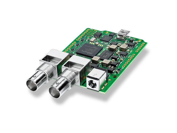 Create a custom camera control solution with the 3G-SDI Arduino Shield from Blackmagic Design. Working in conjunction with a separately available Arduino controller, the Shield embeds an SDI control signal in the Program return feed that will operate compatible cameras, such as the Blackmagic Studio Camera or URSA Mini with the Studio Camera firmware update. These are the same controls output via an ATEM series switcher.